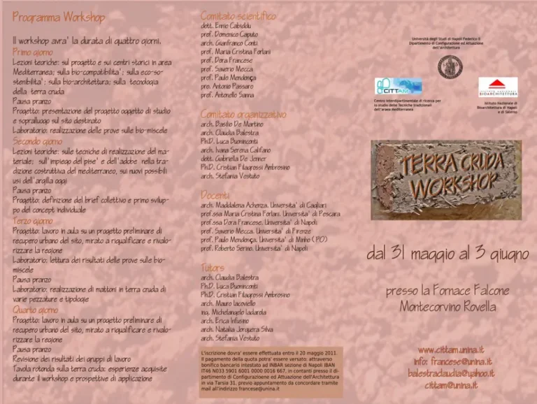 Raw Earth – Workshop on the Sustainable Redevelopment of the Chapel Forecourt in Montecorvino Rovella and Production of Raw Earth Bricks, in collaboration with Cittam, the Municipality of Montecorvino, and Fornace Falcone.